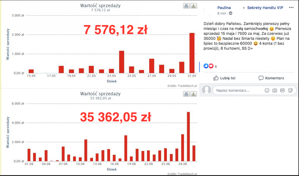 ...7 576 zł w maju (tylko w 15 dni), a w następnym - pełnym miesiącu - aż 35 362 zł. Tak trzymać Paulina!