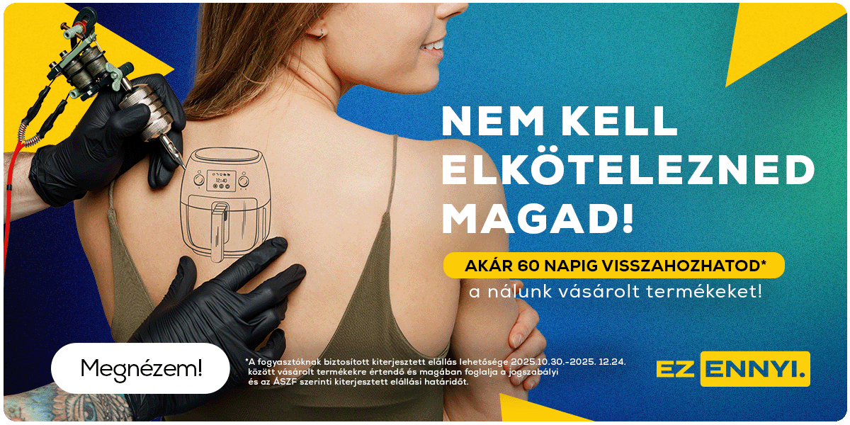 Akár 60 napig visszahozhatod szolgáltatás Az Akár 60 napig visszahozhatod szolgáltatás az Euronics (Vöröskő Kft.) által önként és időszakosan biztosított szolgáltatás. A megjelölt időszakban megvásárolt valamennyi termék esetében a vásárlóink a jogszabályi elállási időn túl, akár 60 napon belül visszahozhatják a gyári csomagolású terméket, ha az ajándékként vagy előre megvásárolt termékként arra mégsem lenne szüksége. Részeletes információért kattints: Akár 60 napig visszahozhatod