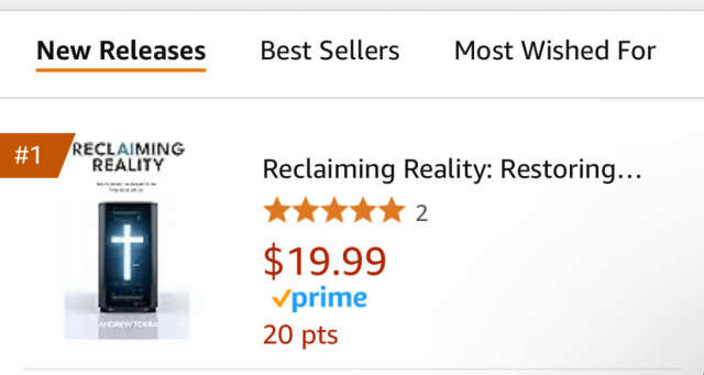 Thanks to your unwavering support, my new book, "Reclaiming Reality: Restoring Humanity in the Age of AI," is now a NUMBER ONE NEW RELEASE across multiple categories on Amazon! This is a huge victory for all of us who are fighting to preserve truth, critical thinking, and genuine human connection in a world increasingly dominated by artificial, well--everything. This book isn't just about AI and technology, it's about how Christian must respond to our rapidly changing world in a way that glorifies God.